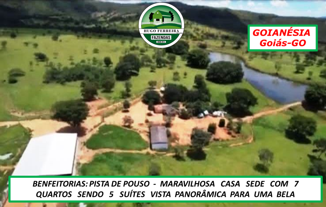 FAZENDA COM ÁREA DE 2.080 HECTARES / 429,75 ALQUEIRES, EM ITAPACI/GO. 30 KM RUBIATABA. 15 KM ESTRADA DE CHÃO. 221 KM DE GOIÂNIA. DUPLA APTIDÃO: PECUÁRIA E AGRICULTURA. TODA FORMADA. PLANTA 726 HECTARES DE CANA OU SOJA. ALTITUDE 783 A 900 m. TEOR DE ARGILA 28% À 35%. TOPOGRAFIA: PLANA, SEMI-PLANA E PARTES ONDULADA. SOLO: CULTURA BARRO VERMELHO: GUARIROBA E BACUN. 95% EM BRACHIARÃO E 5% ANDROPOGON. BENFEITORIAS: REDE DE ENERGIA ELÉTRICA TRIFÁSICA. 170 PLACAS DE ENERGIA SOLAR. 40 DIVISÕES DE PASTOS COM ÁGUA ENCANADA E BEBEDOUROS. 100 CASAS DE COCHOS COBERTAS SISTEMA MODERNO CREEP PARA SAL. TODAS DIVISÕES NO ARAME LISO E CERCAS EM AROEIRA. PORTEIRAS DE FERRO EM TODOS OS PASTOS. CAPACIDADE PARA 4.000 ANIMAIS. CASA SEDE AMPLA GRANDE E CONFORTÁVEL. 5 CASAS PARA FUNCIONÁRIOS. 4 CURRAIS DE FERRO GALVANIZADO COM CORDOALHAS, BRETE, BALANÇA, PASSARELA E EMBARCADOR. 1 CURRAL EM AROEIRA PRÓXIMO À CHEGADA DA FAZENDA. 1 CURRAL COM ESTRUTURA PARA LEITE E ORDENHA. TODOS OS CURRAIS COM COBERTURA DE FERRO. FÁBRICA DE RAÇÃO COMPLETA. GALPÃO PARA SAL MINERAL, DEFENSIVOS E FERTILIZANTES, GALPÃO PARA MAQUINÁRIO. 4 GALPÕES GRANDES E 6 GALPÕES MÉDIOS. SILO COMIL COM CAPACIDADE PARA 100 TONELADAS. RECURSOS HÍDRICOS: RIBEIRÃO, CÓRREGOS PERENES, REPRESAS, POÇOS ARTESIANOS. 4 RESERVATÓRIOS DE 200.000 LITROS COM DISTRIBUIÇÃO PARA OS BEBEDOUROS NO PASTOS. 300 BEBEDOUROS EM ALVENARIA COM BOIA. ÁREA DE CONFINAMENTO E COCHEIRAS COM FUNDO EM INOX. DOCUMENTOS EM DIA. INVESTIMENTO: R$ 75.000.000,00 (SETENTA E CINCO MILHÕES DE REAIS). FORMA DE PAGAMENTO: NEGOCIAÇÃO COM CORRETOR DE FAZENDAS HUGO FERREIRA